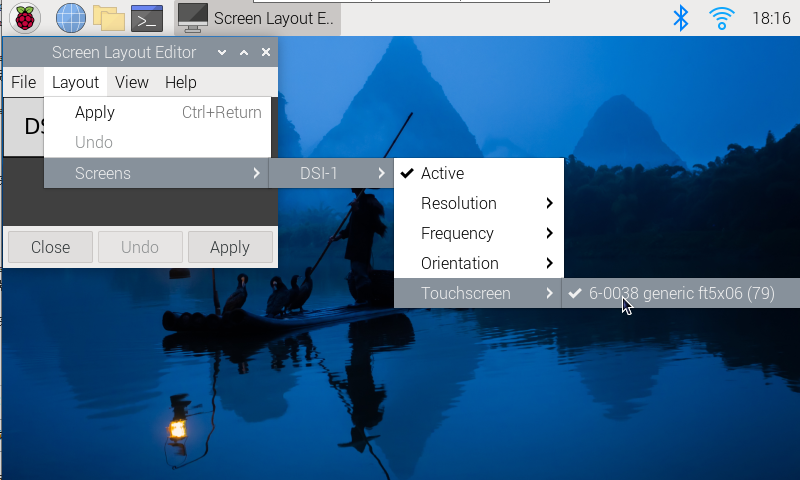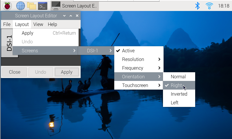 如果使用图形界面进行旋转,可以在屏幕布局编辑器窗口中勾选“Touchscreen”来同步触摸旋转。屏幕旋转方法请参考前面的介绍。命令行旋转方法请参考以下文字: