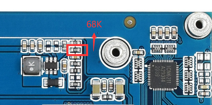 PS:默认出厂最低亮度为可视状态,如需完全关闭背光实现黑屏效果,可以将下图100K电阻手动改为68K电阻:
