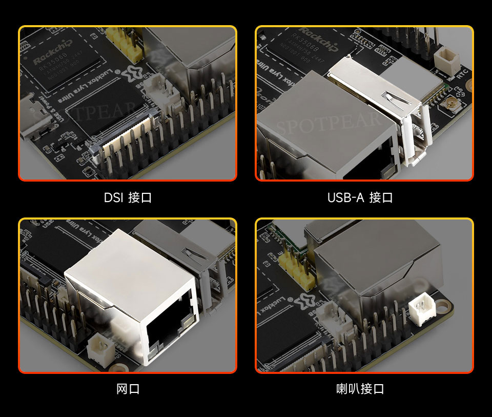 成 DSI 接口、USB-A 接口、网口、喇叭接口等