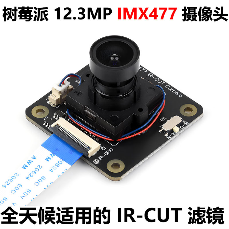 1230 万像素摄像头模块采用 IMX477 感光芯片,可接入树莓派系列