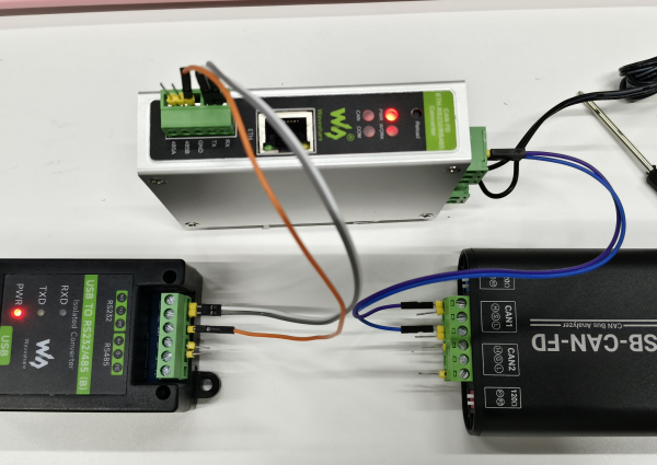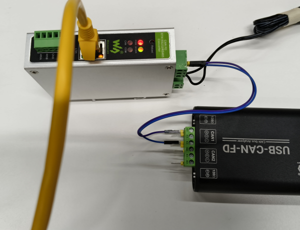 1、CAN FD ETH RS232/RS485 Converter 的 CAN-H 接 USB-CAN-FD 的 CAN1-H