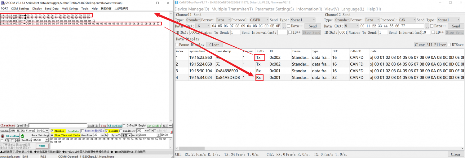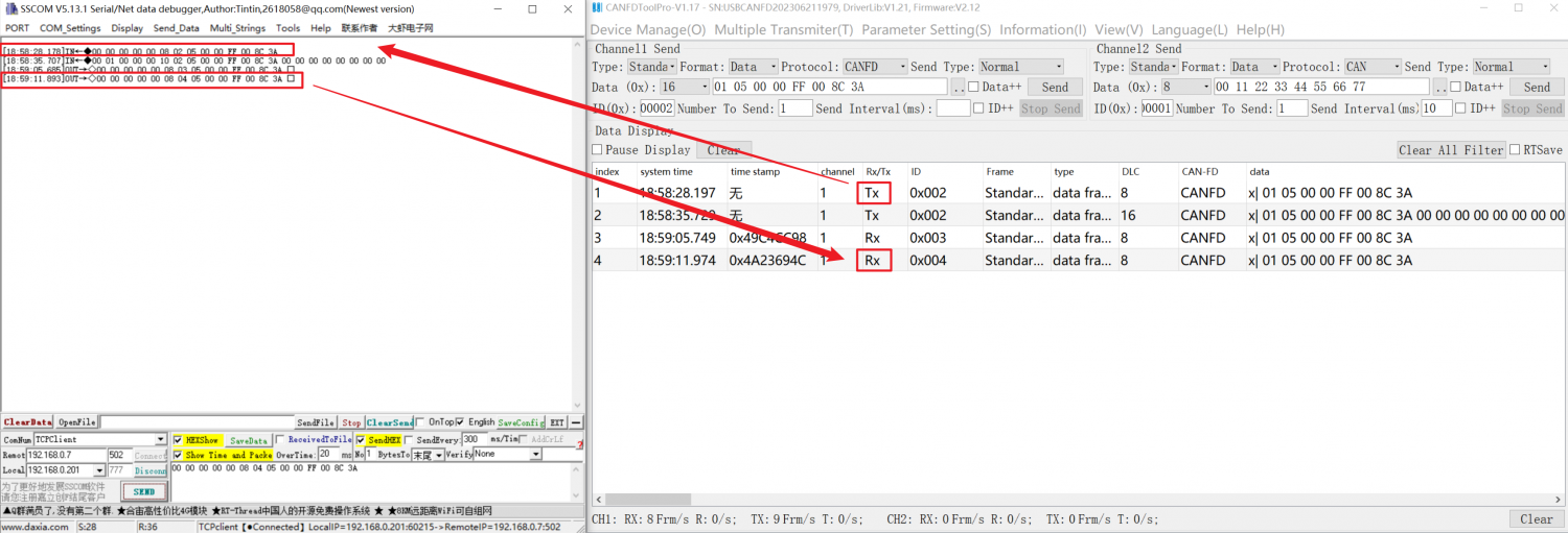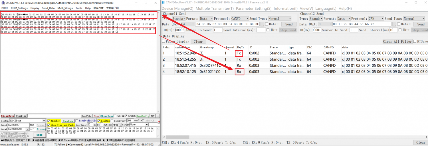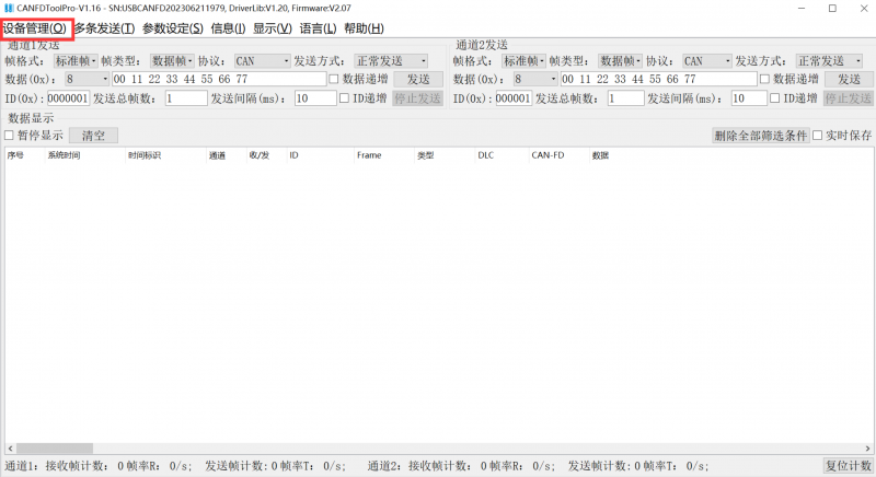 帧数据:CAN模式长度8字节,CANFD模式长度64字节,不足必须补00。