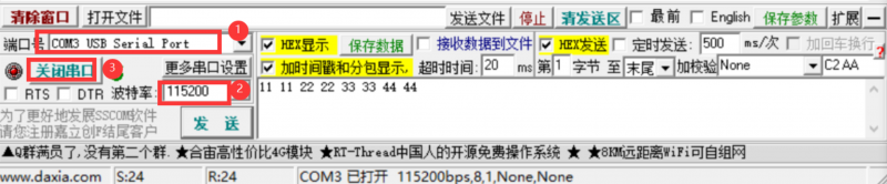 数据长度指数据域的字节长度。数据长度和帧尾数据必须匹配,才能正确传输,否则丢弃。例如:帧头配置为AA,帧尾配置FF。串行帧 AA03010204FF,则可正常传输。如果串行帧发送 AA0301020304FF,数据域 010203后为04而非帧尾FF,则丢弃该帧,不能传输。
