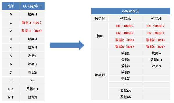 CAN转以太网数据(未开启使能帧信息/使能帧ID) CANFD转以太网数据(开启使能帧信息/使能帧ID)