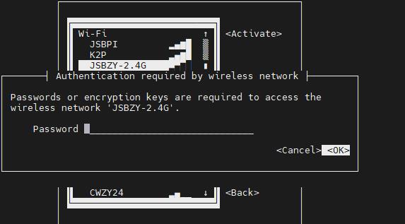 • 这里提供一个比较方便连接WiFi的方式;主要供终端使用,如果有接HDMI的可以直接使用图形化界面操作