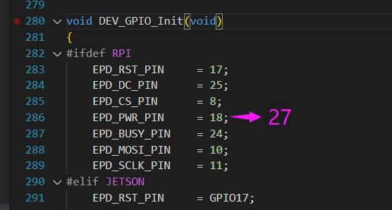 • c 打开文件 RaspberryPi_JetsonNano/c/lib/Config/DEV_Config.c;按图示进行修改
