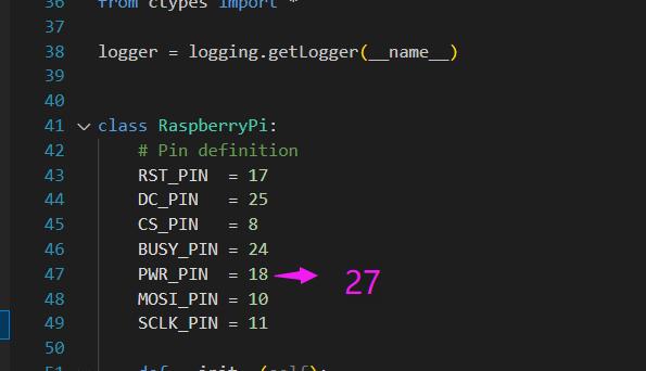 • python 打开文件 RaspberryPi_JetsonNano/python/lib/waveshare_epd/epdconfig.py;按图示进行修改