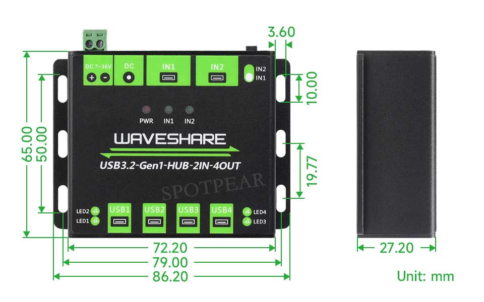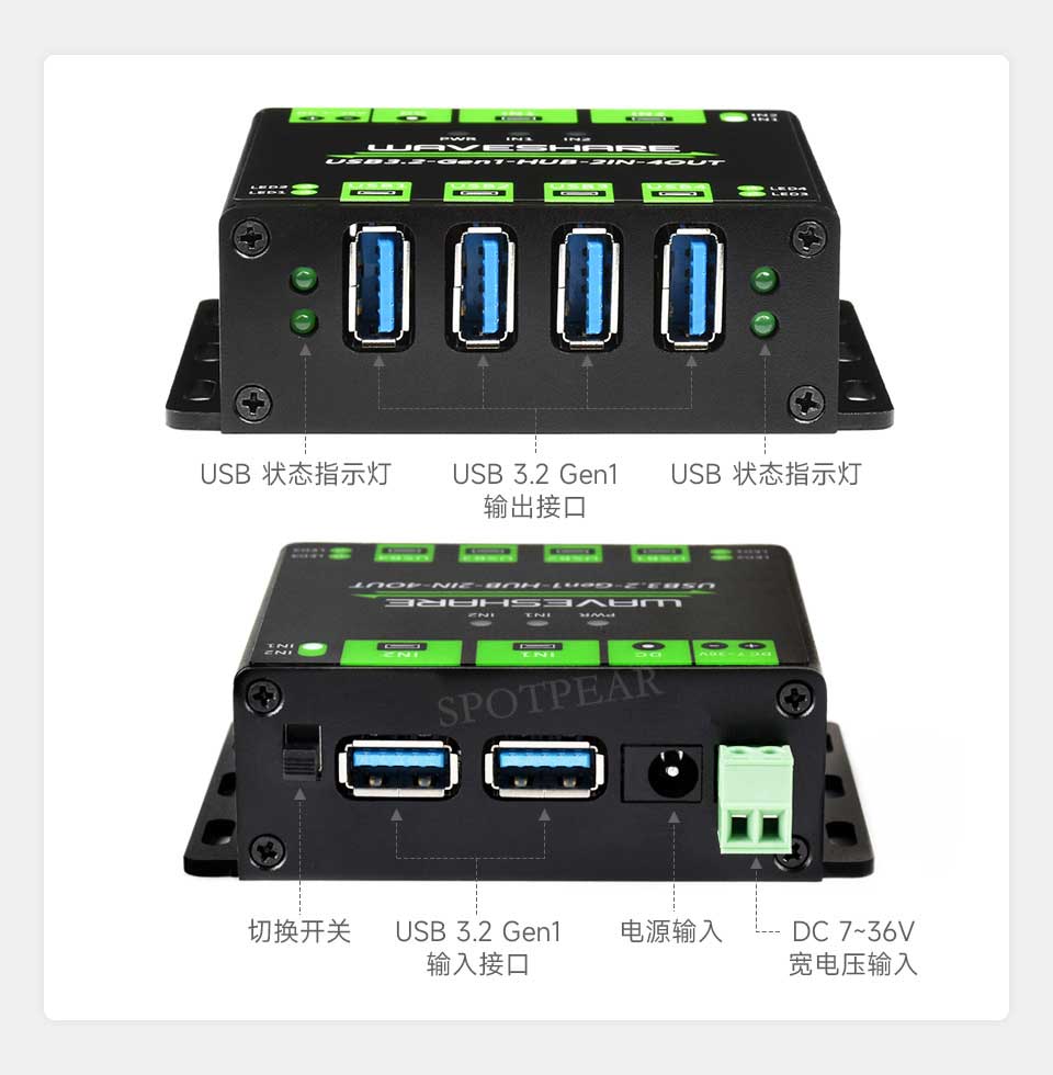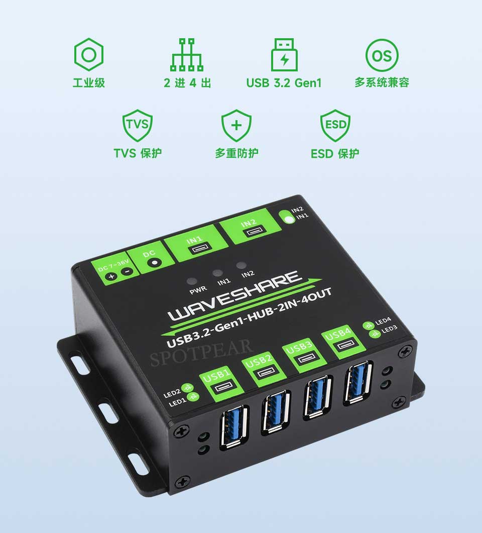 | USB HUB 输入 | 5V,两路 USB-A 型接口(独立供电,互不串电) |