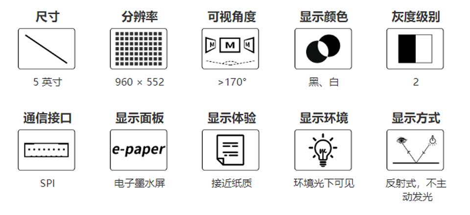 | 显示尺寸 | 110.59 × 62.65 (mm) | 刷新功耗 | <50mW |