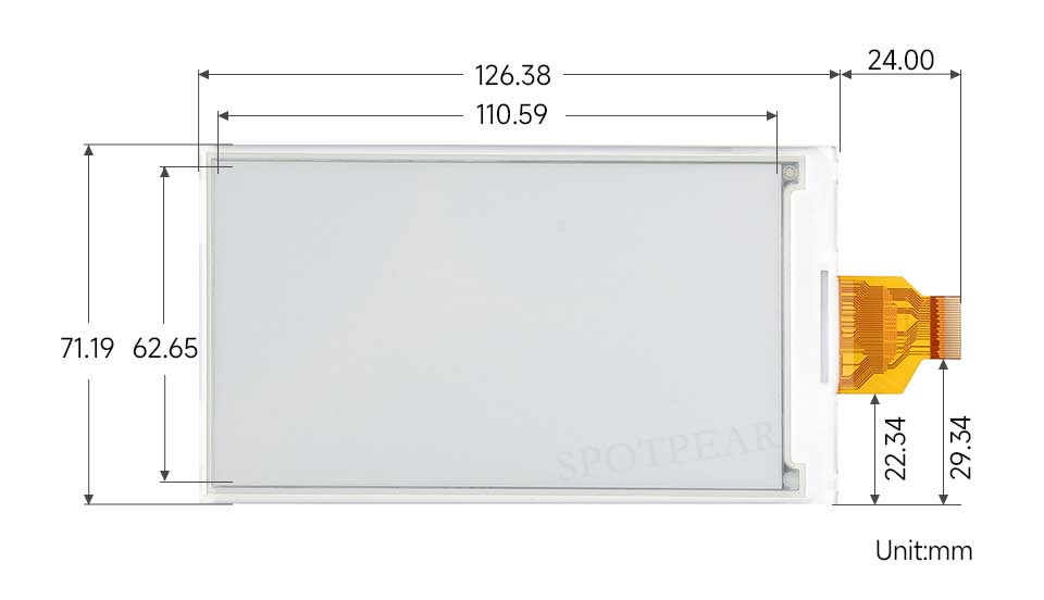 | 外形尺寸 | 裸屏大小:126.38 × 71.19 × 0.79 (mm) | 局部刷新 | 0.7s |