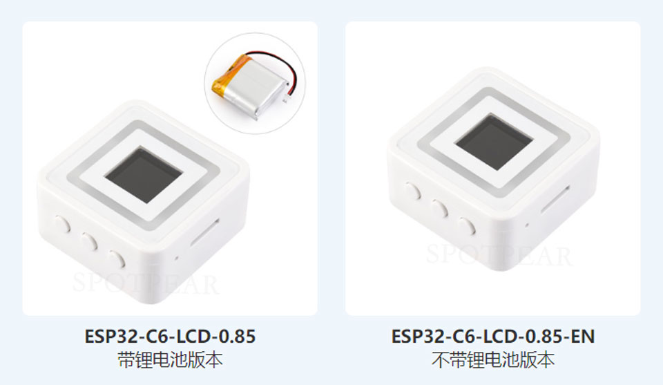 ESP32-C6-LCD-0.85 是一款支持 2.4GHz Wi-Fi 6 和蓝牙 BLE 5 的微控制器开发板,采用小方盒开模塑料外壳,小巧美观且质感出众。板载 0.85 英寸 IPS 彩色 LCD 显示屏、Micro SD 卡槽、8 颗 RGB 炫彩灯及低功耗音频编解码芯片等外设,方便开发多媒体与交互应用。凭借这些硬件资源,产品可实现图像显示、音频播放和灯效控制等功能,既适合快速原型开发,也可嵌入终端产品进行个性化扩展和二次开发。