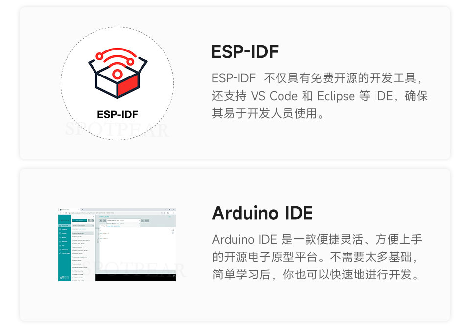 支持 ESP-IDF,Arduino