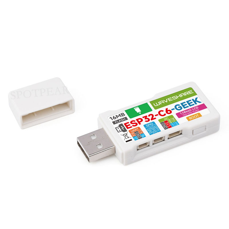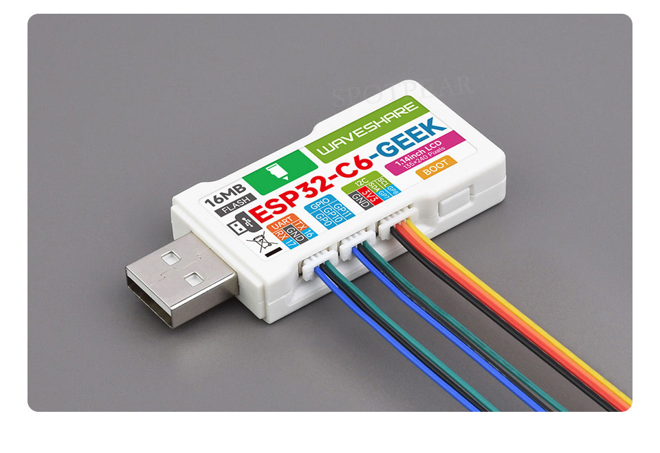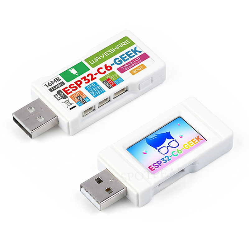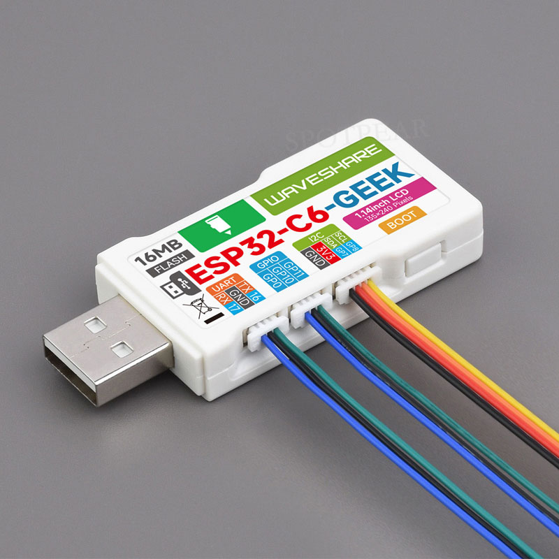 ESP32-C6-GEEK 是一款微雪 (Waveshare) 为极客设计的开发板,板载 USB-A 公口、1.14 英寸 LCD 屏幕和 Micro SD 卡槽等外设,支持 2.4GHz Wi-Fi 6 和 BLE 5,集成 16MB Flash,提供 I2C 接口、UART 接口和 GPIO 接口,可以为你的项目提供更多可能。