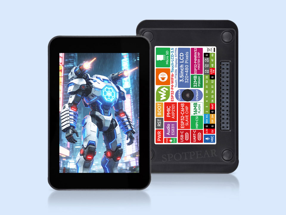 本产品是一款微雪 (Waveshare) 设计的基于 ESP32-P4 芯片的双核加单核 RISC-V 高性能开发板。板载了 3.5 英寸电容高清 IPS 屏、高度集成的电源管理芯片和低功耗音频编解码芯片等外设,支持丰富的人机交互接口,包含 MIPI-CSI (集成图像信号处理器 ISP),它还支持 USB OTG 2.0 HS 以实现高速连接。ESP32-P4 芯片集成了数字签名外设和专用密钥管理单元,确保数据和操作的安全性,专为高性能和高安全应用设计,充分满足嵌入式应用对人机界面支持、边缘计算能力和 IO 连接特性等方面的更高需求。