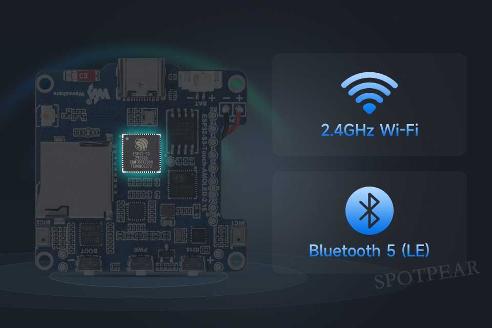 支持 2.4GHz Wi-Fi (802.11 b/g/n) 和 Bluetooth 5 (LE)