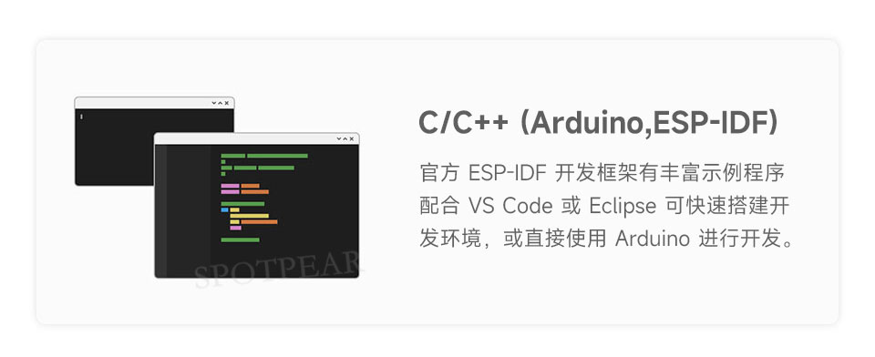 • 内置 512KB SRAM、384KB ROM,叠封 4MB Flash 及 2MB PSRAM,资源丰富