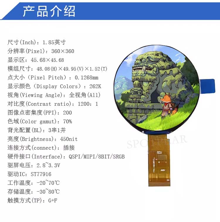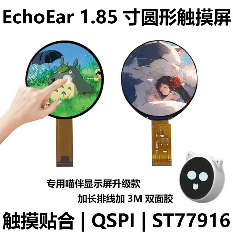 喵伴1.85寸EchoEar圆形触摸LCD显示屏360x360 QSPI ST77916
