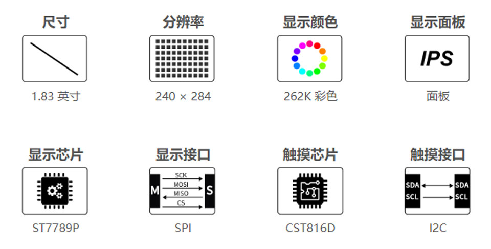 | 显示芯片 | ST7789P | 触摸芯片 | CST816D |