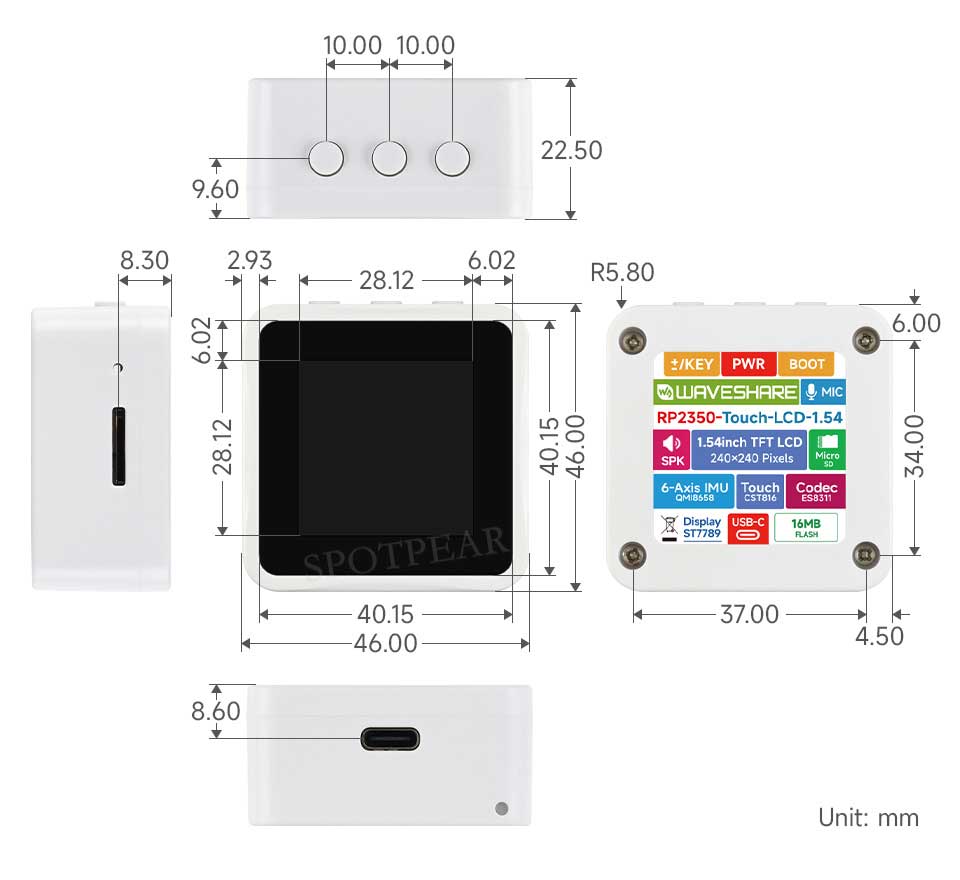 | 触摸类型 (仅触控版本) | 电容感应式 | 触控 IC (仅触控版本) | CST816 |