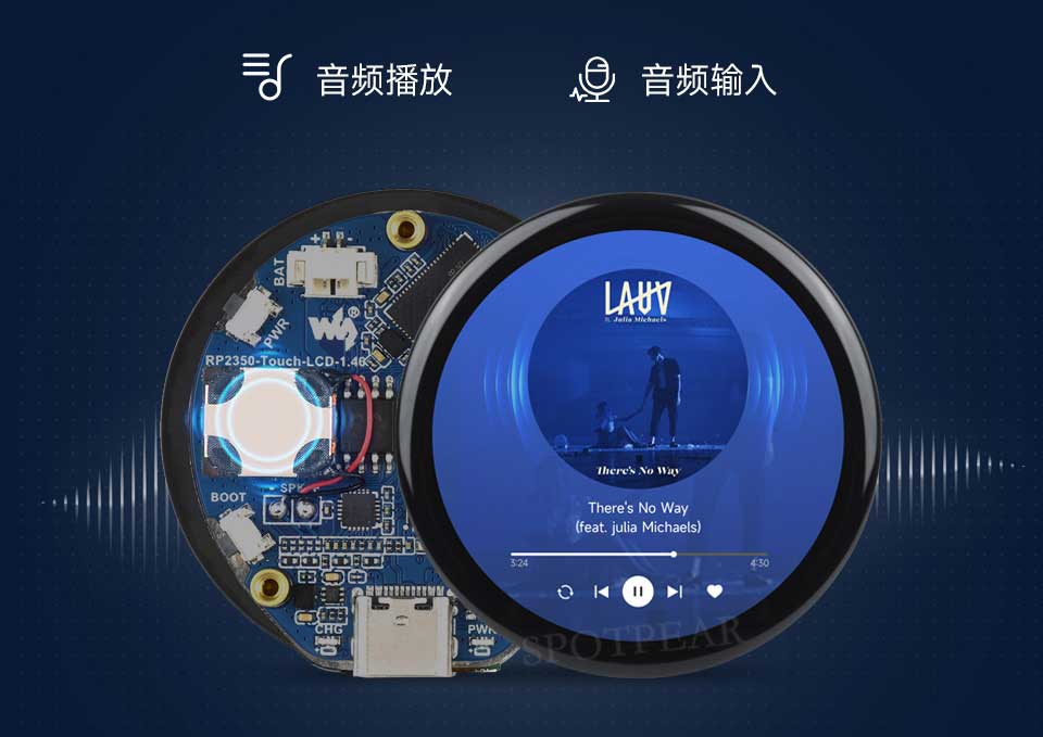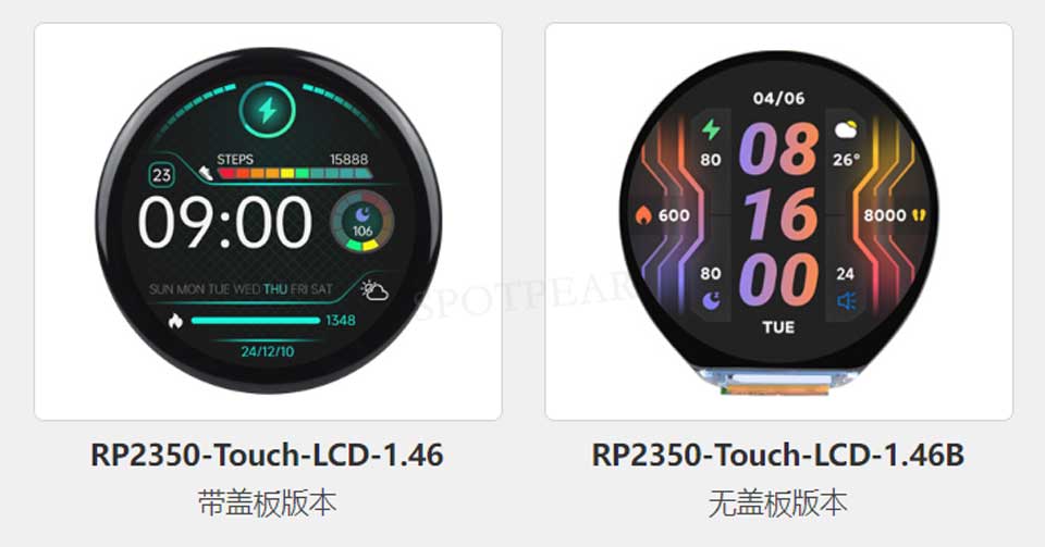 RP2350 高性能微控制器开发板 搭载 1.46寸圆形屏触控屏开发板 412×412 分辨率 65K 彩色