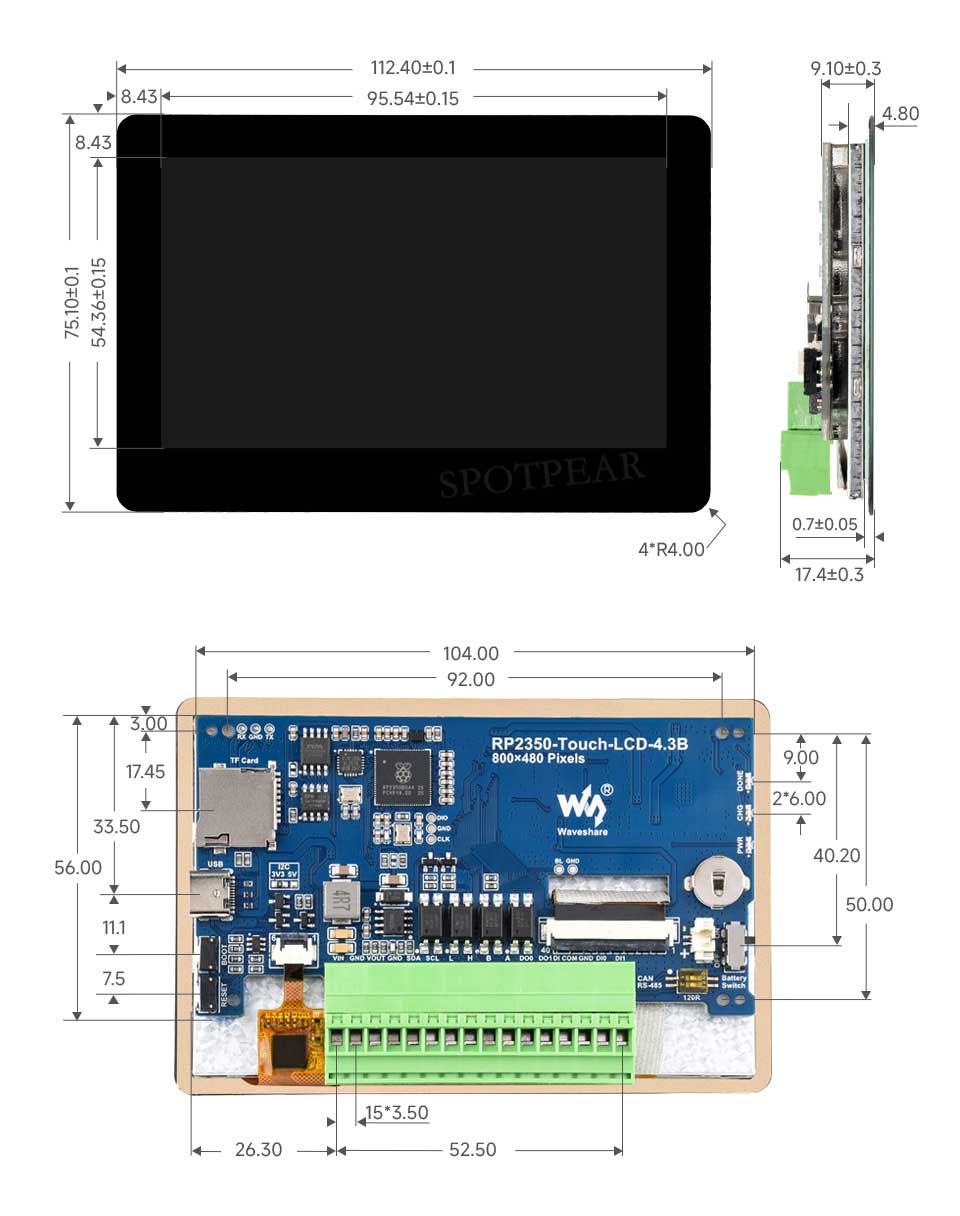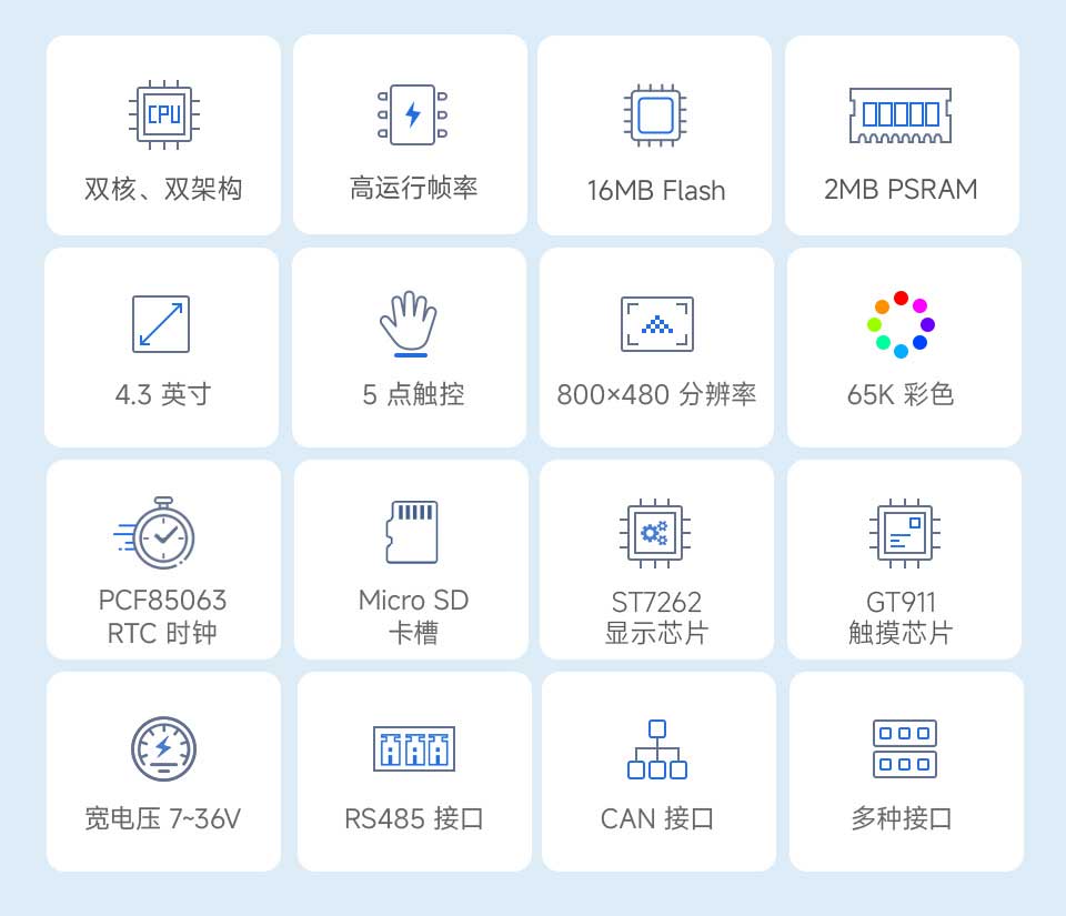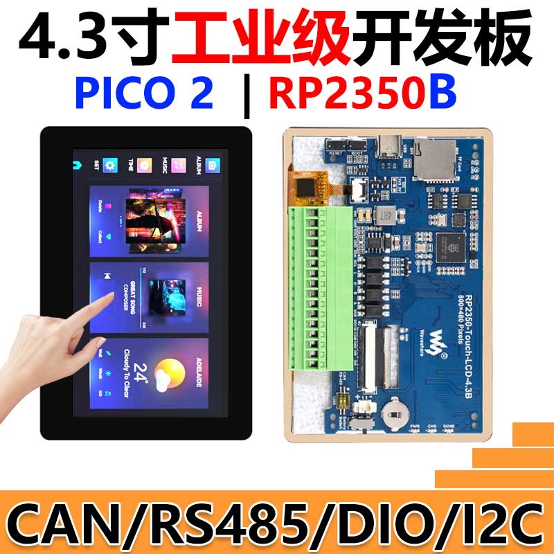 RP2350-Touch-LCD-4.3B 是一款微雪 (Waveshare) 自主设计的高性能、高集成的微控制器开发板。集成大容量 Flash 和 PSRAM,板载了 4.3 英寸电容高清 LCD 屏、RTC、Micro SD 卡槽等外设,结合多种通讯接口,便于开发和集成到产品中。