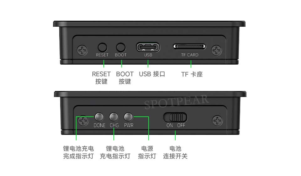 (有连接电源,没有连接电池或者开关关闭,则 CHG 闪烁 DONE 常亮)