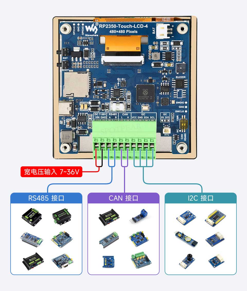 可通过 CAN、RS485 和 I2C 等接口接入更多扩展设备