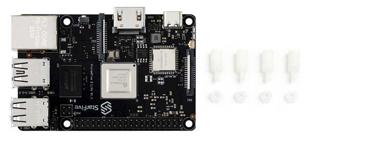 | CPU | StarFive JH7110 RISC-V U74 四核 64 位 RV64GC ISA SoC,搭载 2MB L2 缓存和 S7 内核,最高 1.5 GHz | 赛昉科技 JH-7110S RISC-V 四核 64 位 RV64GC ISA SoC 搭载 2MB L2 缓存和协处理器,最高 1.25 GHz |