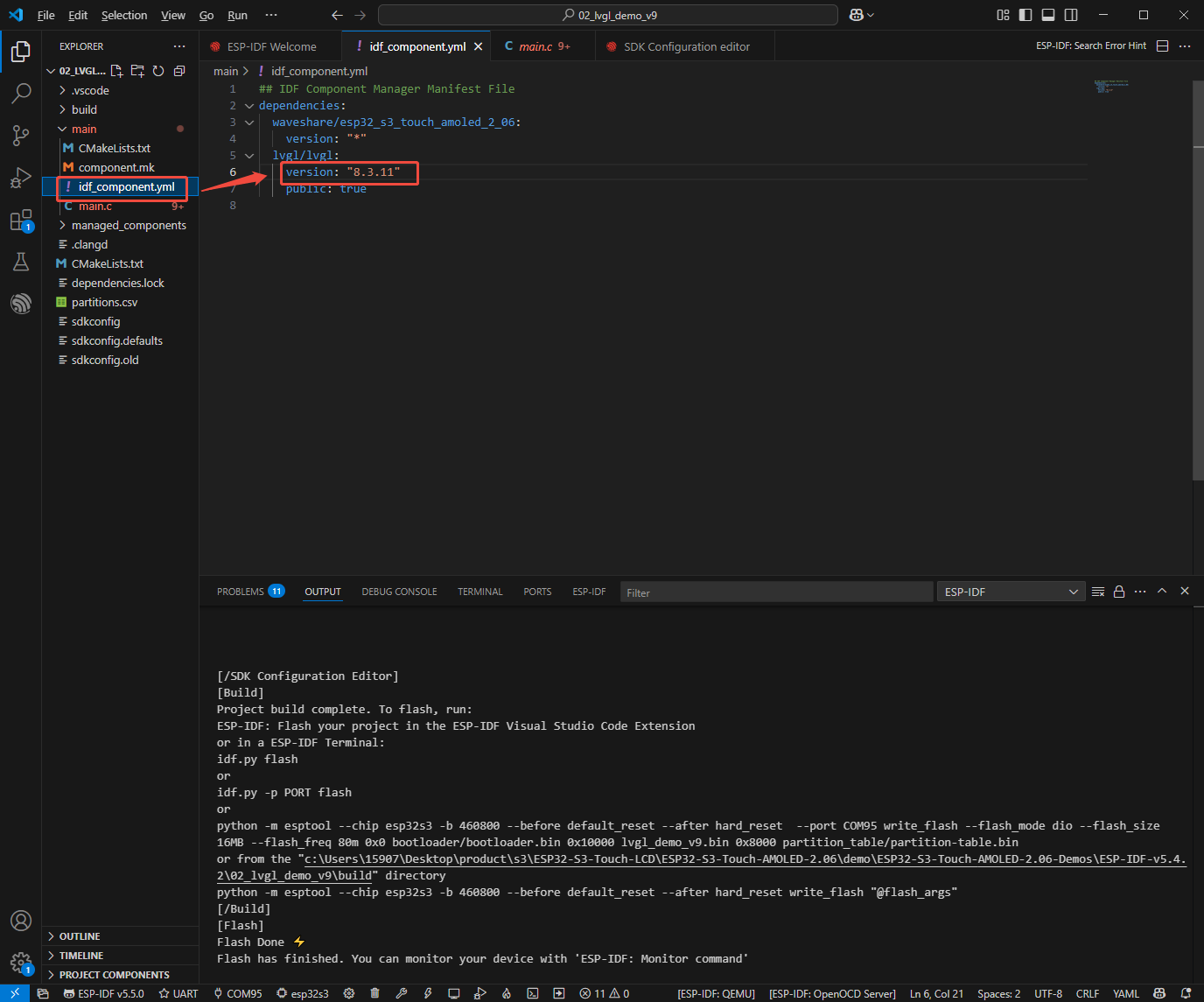 ESP32-C6-Touch-AMOLED-2.06基于ESP32-C6芯片,支持ESP-IDF及其生态,可使用ESP-IDF开发,也可以使用arduino-esp32 Core开发。ESP-IDF可与Vscode搭配使用,arduino-esp32可与Arduino IDE或PlatformIo搭配使用。