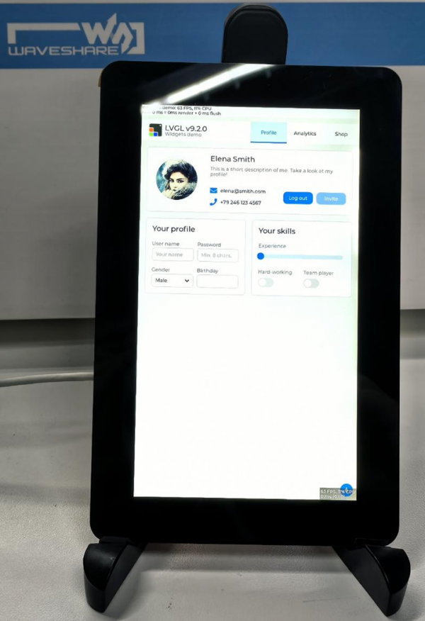 本示例展示了 ESP32-P4 通过 MIPI DSI 接口将 LVGL 图像显示,可充分体现 ESP32-P4 强大的图像处理能力