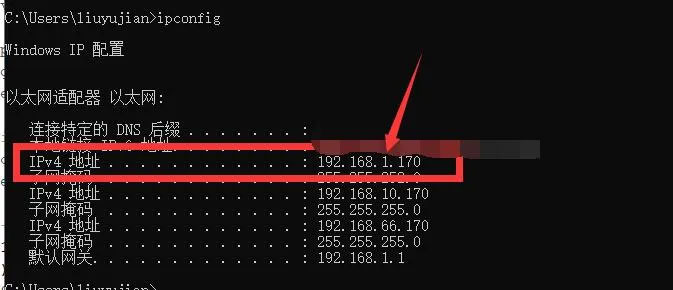 按下win + R 键,输入CMD,打开命令行,获取电脑 IP.