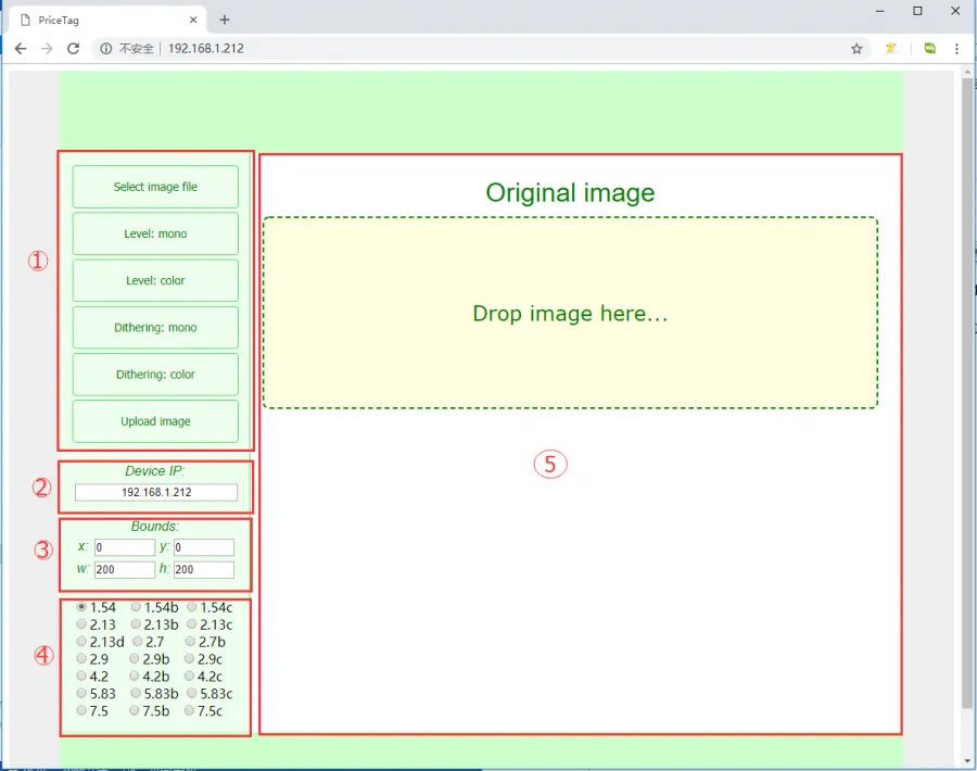 区域①点击 Upload image 将图片上传到墨水屏显示。