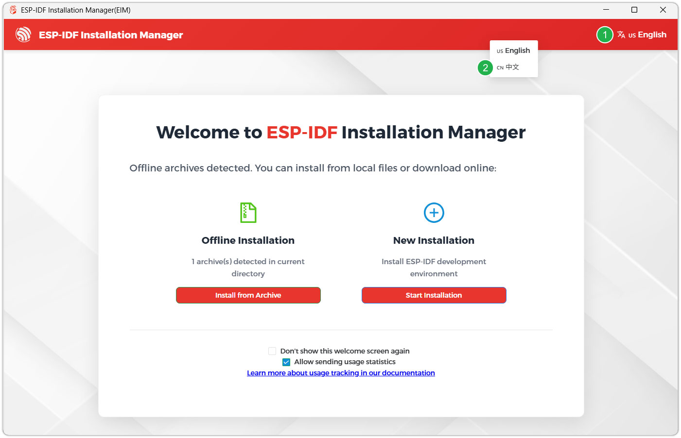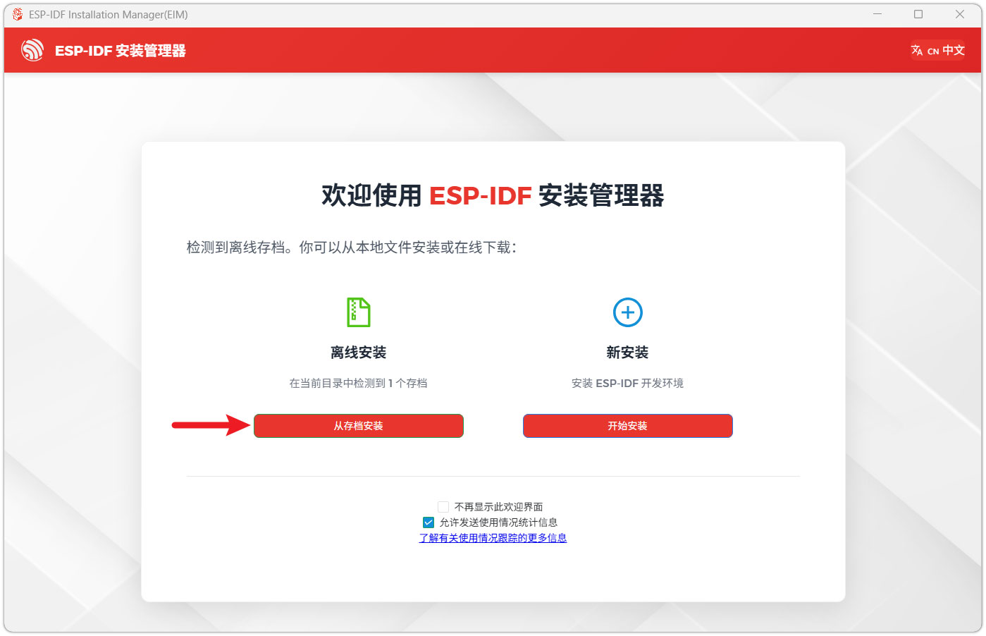 下载完成后,双击运行 ESP-IDF 安装器(eim-gui-windows-x64.exe)。
