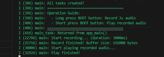 长按 BOOT 按键即可进入录音模式,对着 MIC 说话,3 秒后自动结束