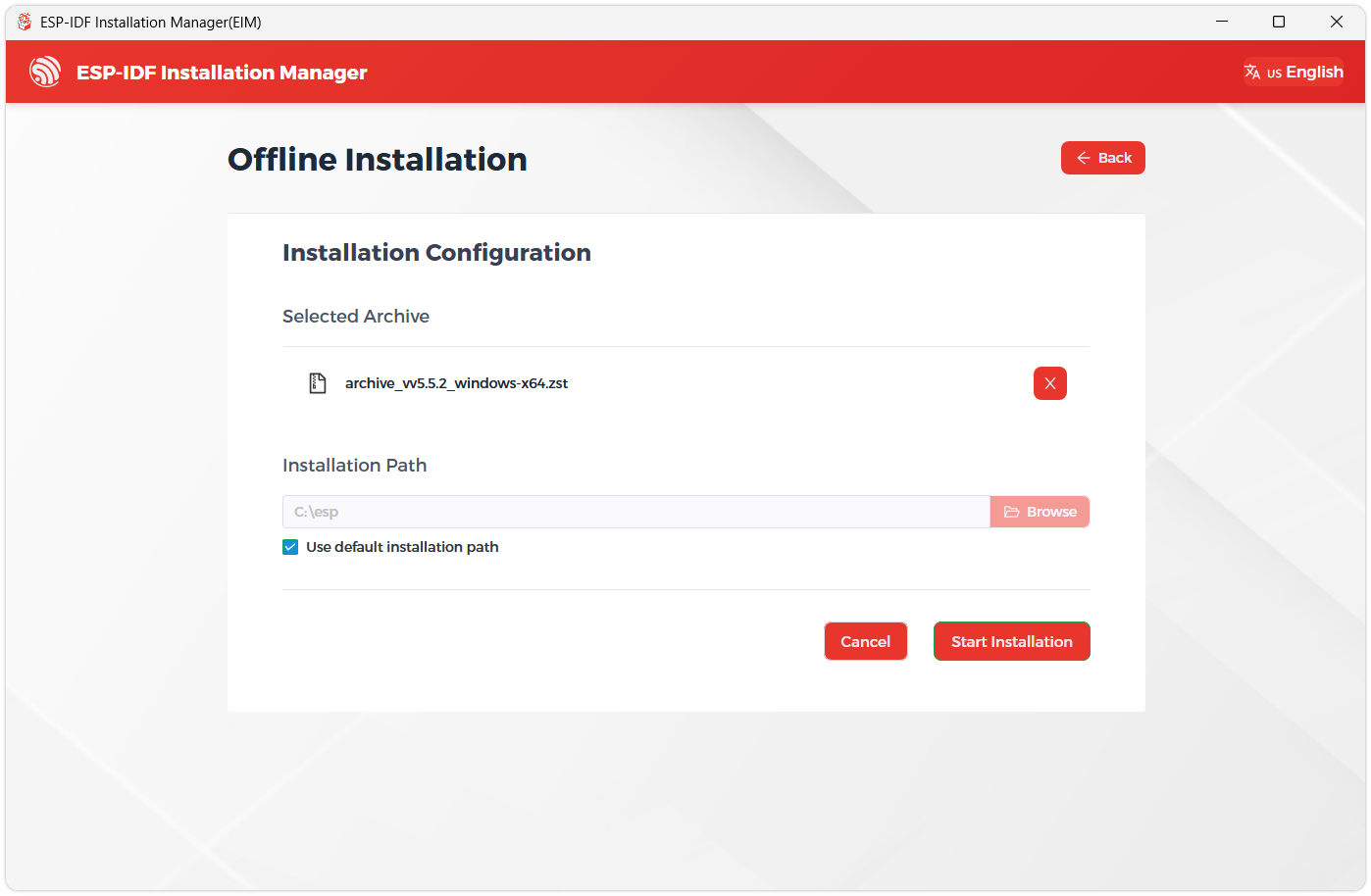 下载完成后,双击运行 ESP-IDF 安装器(eim-gui-windows-x64.exe)。
