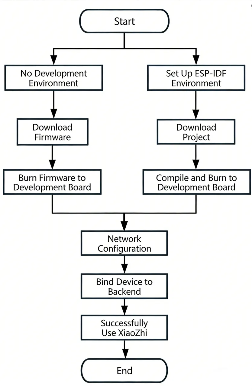 本文演示如何为微雪电子支持小智 AI 的 ESP32 开发板烧录固件,包括无开发环境烧录(直接烧录预编译固件)和有开发环境烧录(从源码编译并烧录)两种方式。