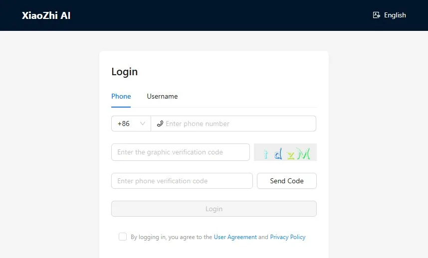 访问 小智 AI 控制面板,如未注册请先完成账号注册并登录: