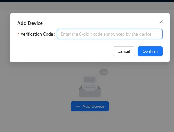 输入 6 位验证码后,设备将自动激活并显示在设备管理页面,即可正常使用。