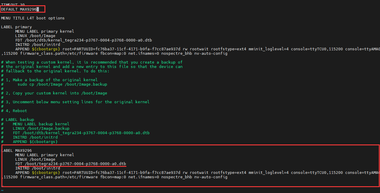 sudo vi /boot/extlinux/extlinux.conf