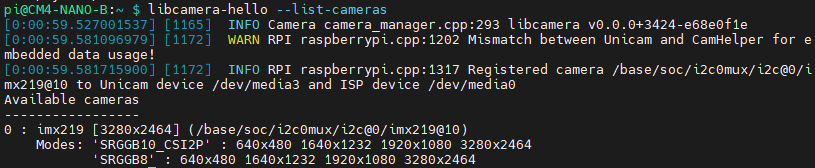 容许一个连接DSI一个连接CSI,例如使用IMX219连接MIPI0