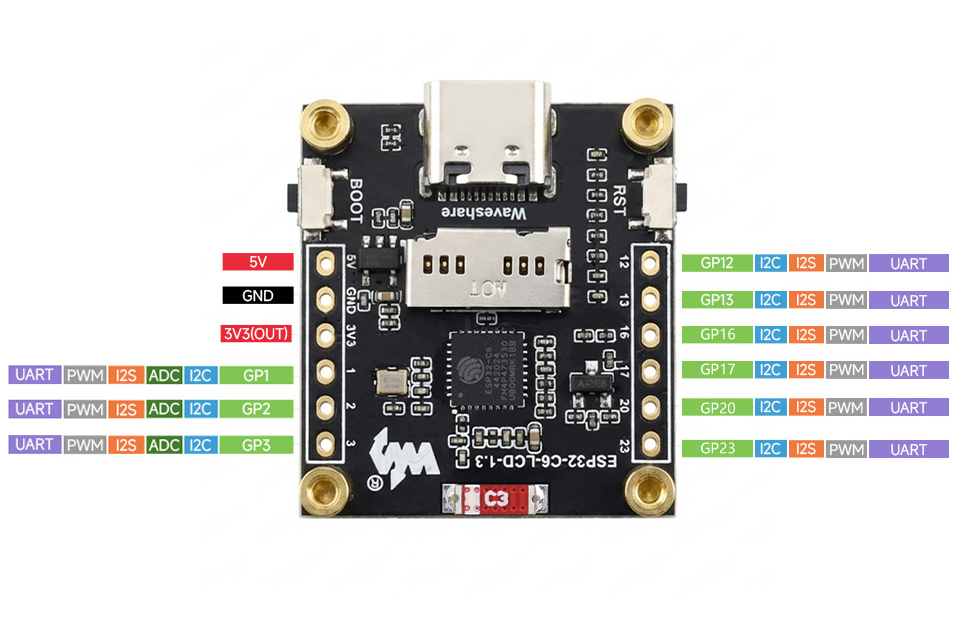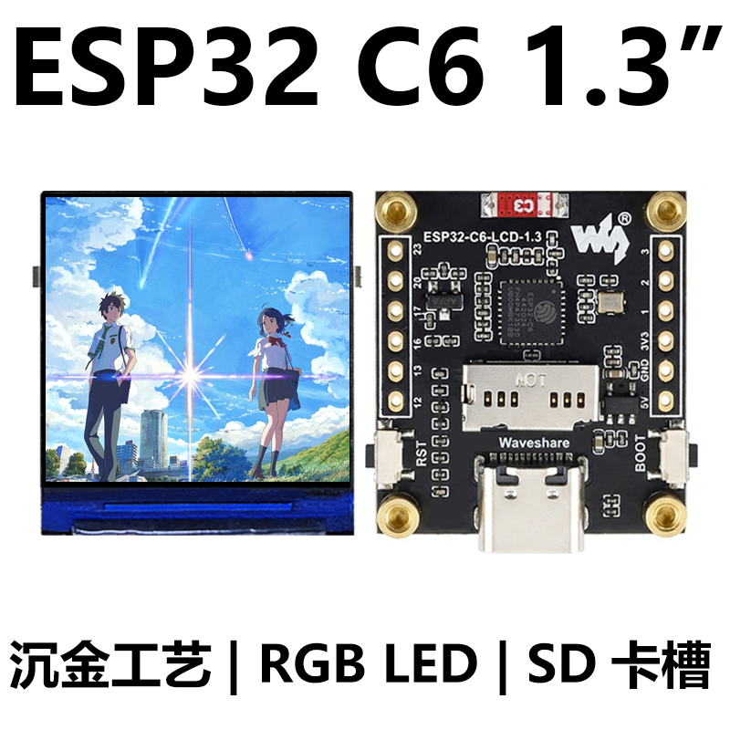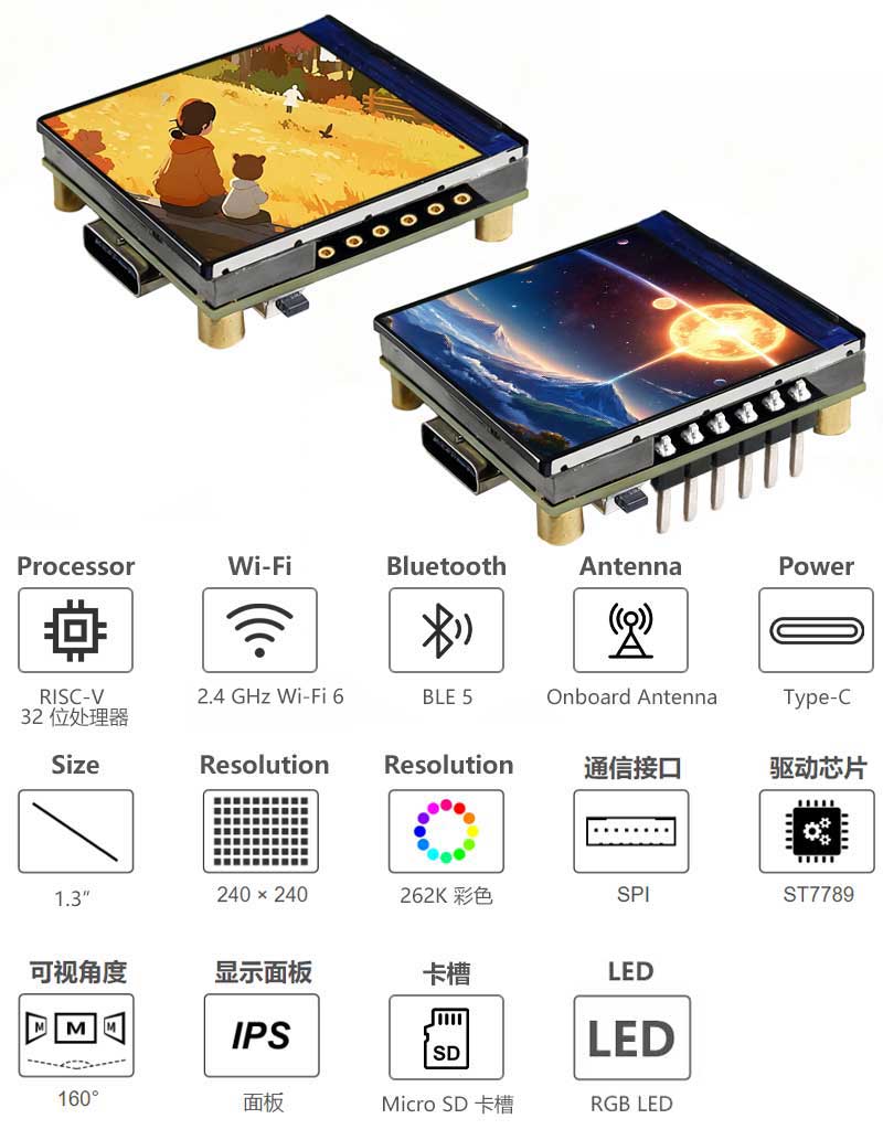 ESP32-C6开发板1.3寸LCD显示屏SD卡槽 LVGL兼容Arduino