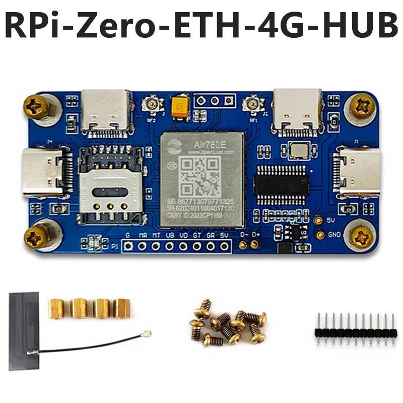 树莓派Zero 4G CAT1 LTE USB HUB扩展板Air780e以太网联网模块