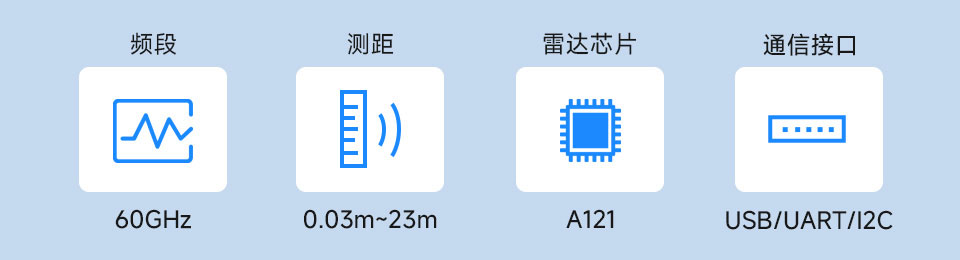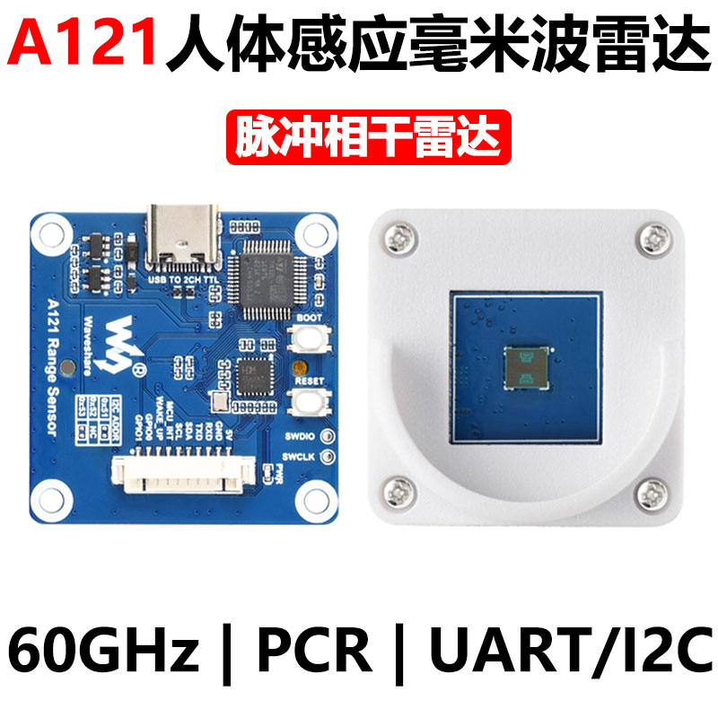 A121 Range Sensor 距离传感器基于 60GHz 脉冲相干雷达 (PCR) 技术,可实现人体存在与运动检测,并支持高精度距离测量。通过可配置的检测区域和灵敏度参数,具备良好的抗干扰能力。模块集成 Arm Cortex-M4 MCU (STM32L431CBT6),既可作为独立运行单元在 Acconeer RSS 之上直接部署用户应用,也可通过寄存器命令协议与外部主控通信。其体积小、功耗低、易集成,适用于人体存在检测、接近感应、非接触触发及生命体征监测等应用。