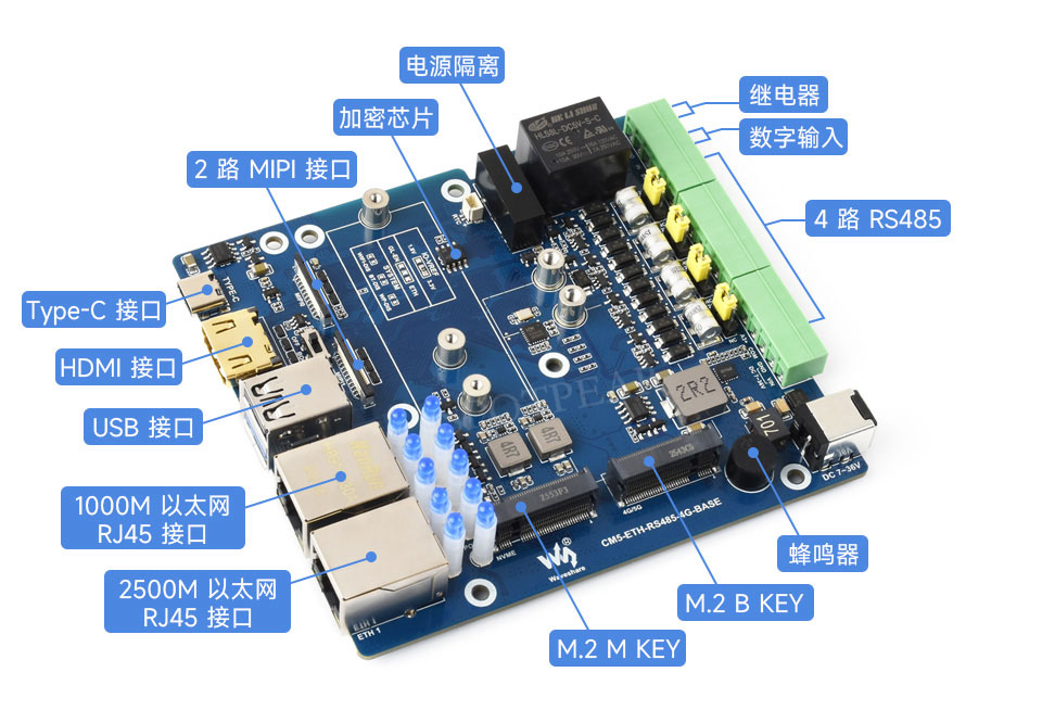 | 存储 | 板载 Micro SD 卡槽 (适用于不带 eMMC 的 CM5 版本) |