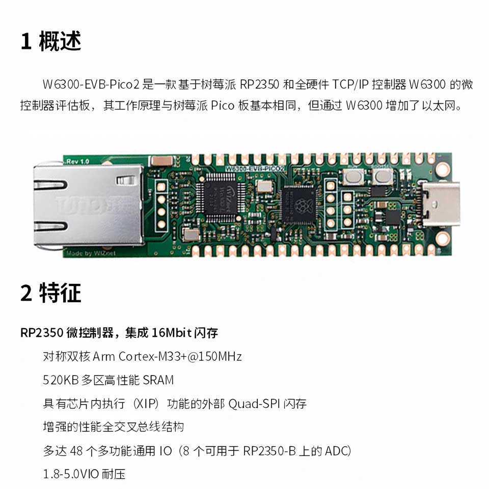 树莓派Pico 2 RP2350A W6300-EVB以太网开发板ETH RJ45