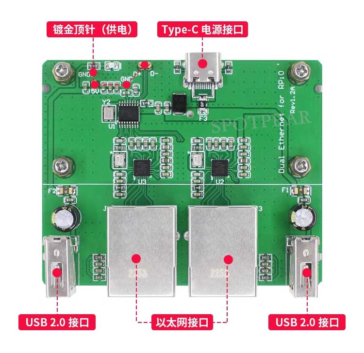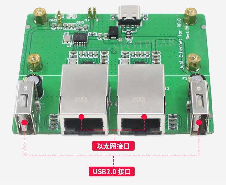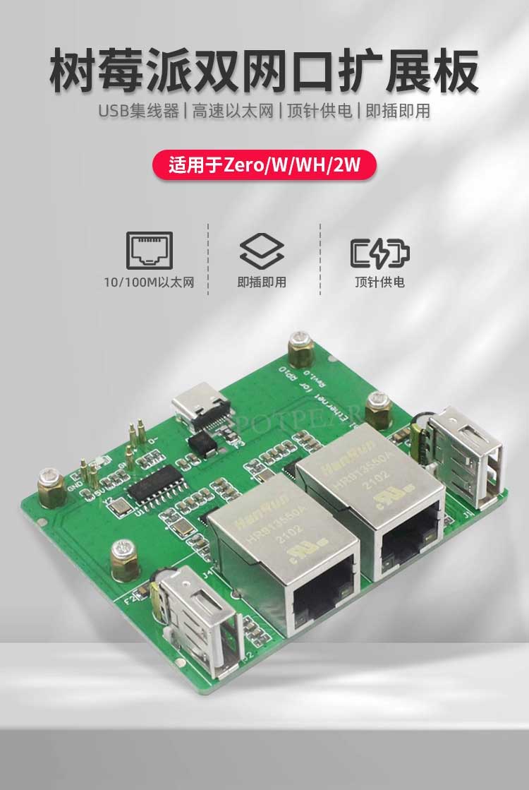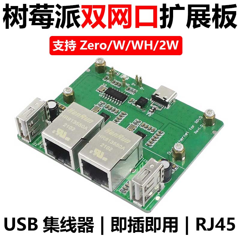 树莓派Zero 2W双网口扩展板 USB HUB拓展坞 RJ45以太网集线器模块