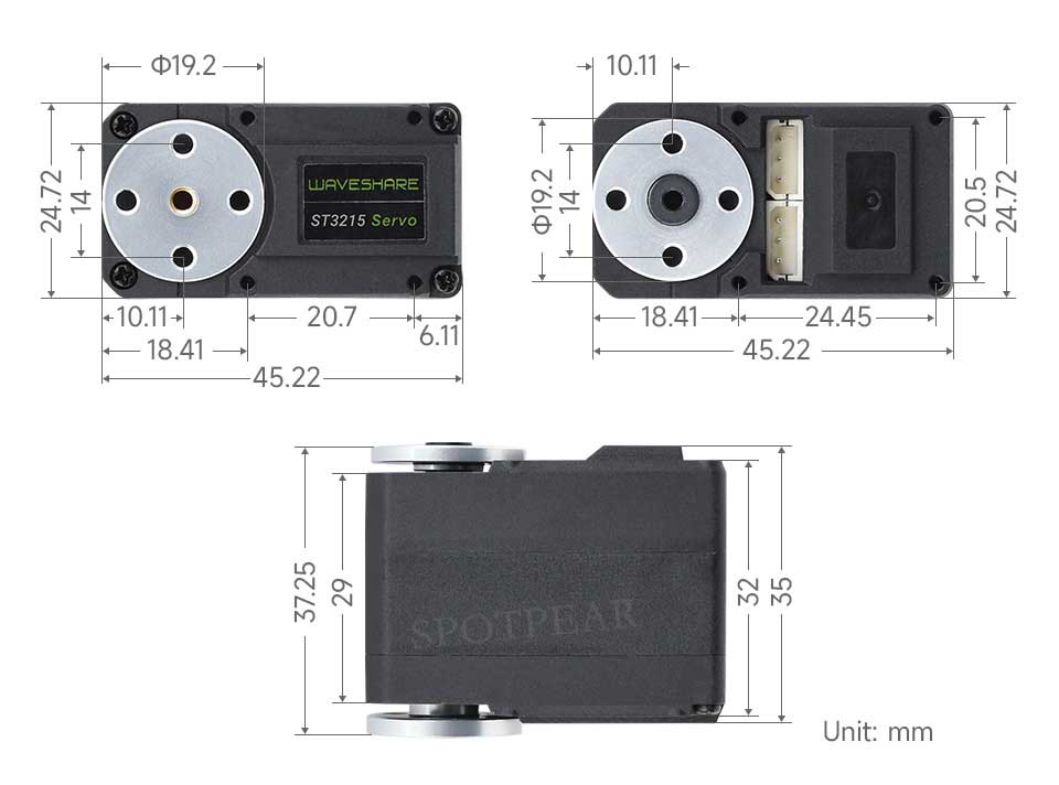 | 型号 | ST3215 Servo 总线舵机 | ST3215-7.4V Servo 总线舵机 |
