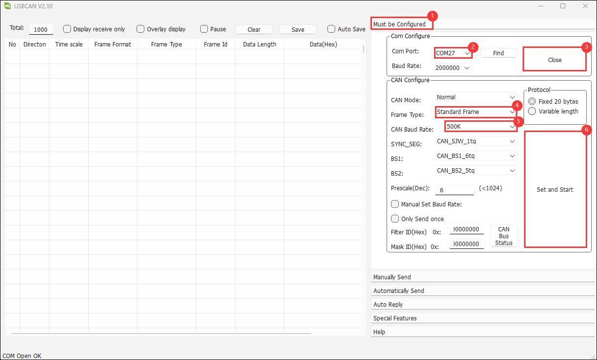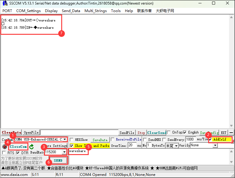 ③. 选择COM口;