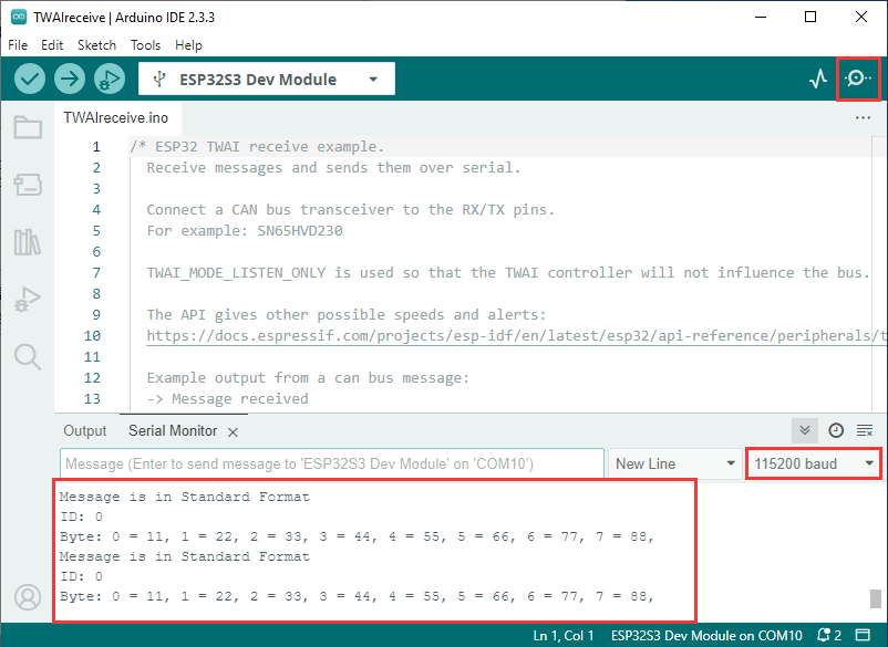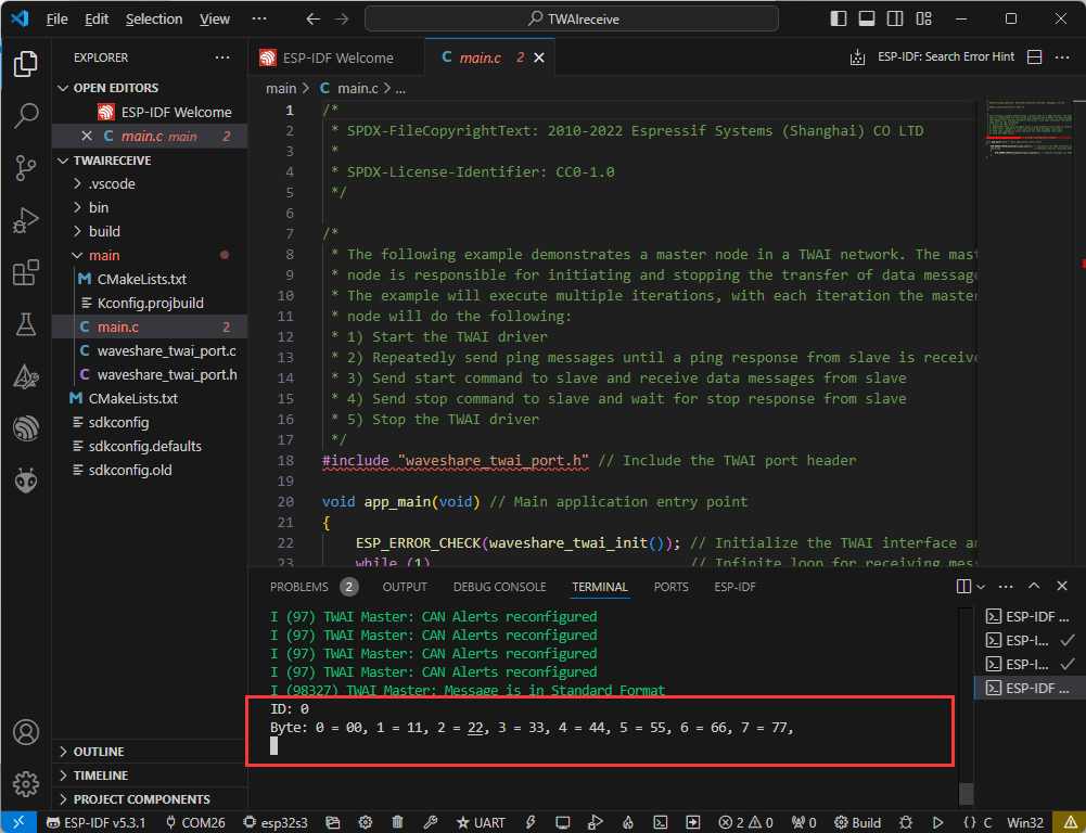 waveshare_twai_receive() :【代码烧录】