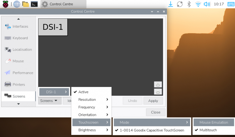 Trixie和Bookworm系统支持两种触控模式,可在 Screen Configuration > Touchscreen 菜单中切换: